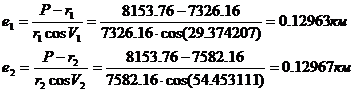 После чего вычисляем эксцентриситет,