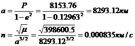аргумент перицентра, большую полуось орбиты и среднее движение: