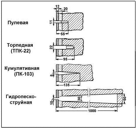 существуют и другие виды перфорации - пулевая, торпедная, кумулятивная - и