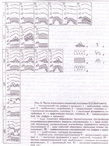 выступами фундамента и эффуз.телами в ядрах поднятий