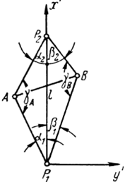 Должны быть измерены четыре угла α1, β1 и α2, β2 (рис. 1). Кроме того, при одной из