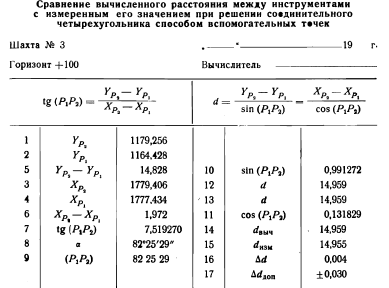 треугольника. Работа в шахте при примыкании соединительным четырехугольником слагается