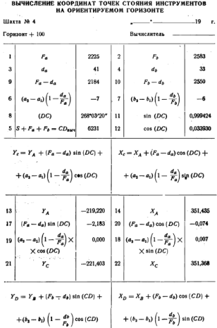 дирекционный угол створа отвесов могут быть определены решением соединительного