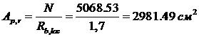 Площадь верхнего обреза фундамента определяем из формулы