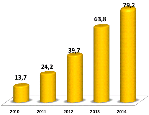 дуже динамічно - за останні 5 років (2010-2014 рр.) Обсяг імпорту збільшився