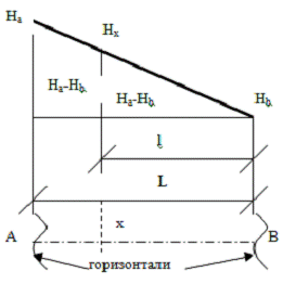 нижележащей горизонтали; На - отметка вышележащей горизонтали; L - расстояние между горизонталями