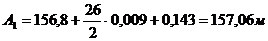 вычисленных отметок 157,275 - 156,852=0,423 м.