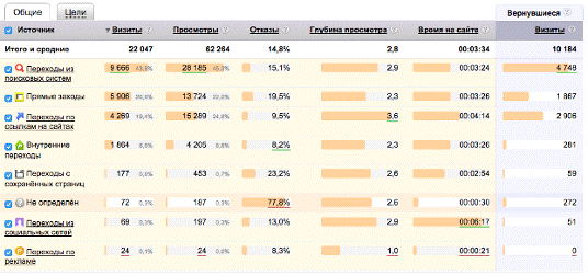 страниц), карта путей по сайту, источник перехода (поисковые системы, другие