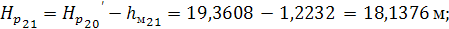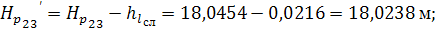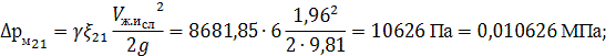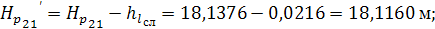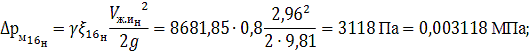 гидроцилиндра (участок 16) складываются из потерь при внезапном расширении