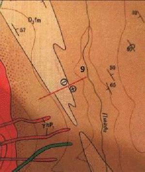 характерные участки контактов разновозрастных пород, профиль рельефа, и