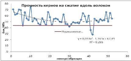 высоки. Предел прочности на сжатие вдоль волокон для чистых образцов равен 44