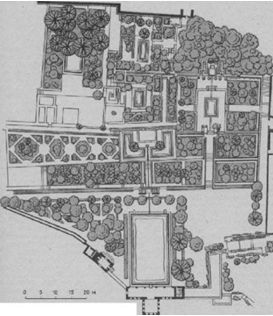 участков, как правило, был прямоугольный водоем, который влиял и на регулярное