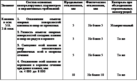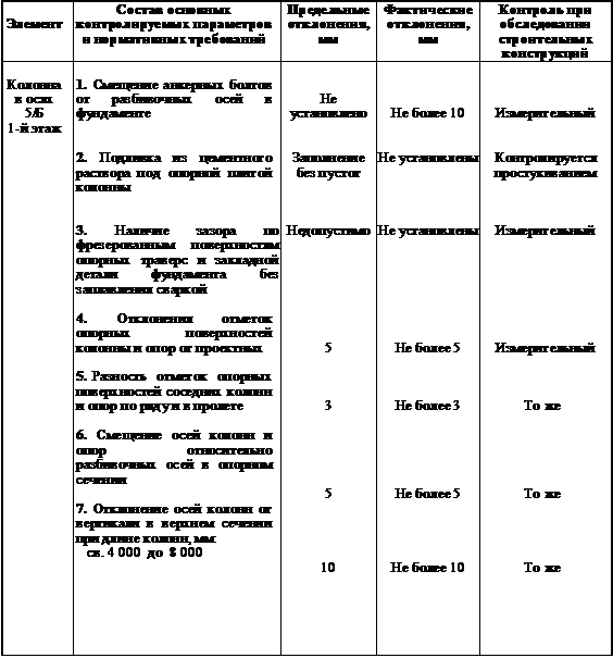 таблице 7, можно сделать вывод о том, что контролируемые параметры конструкций