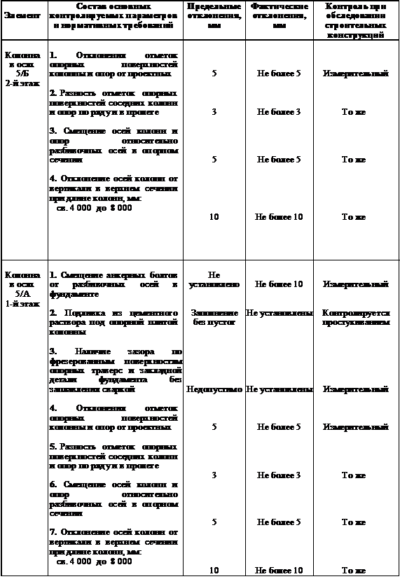 плоскости колонны от вертикали в пределах норм; непредусмотренные проектом