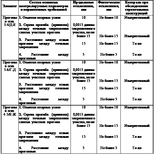 прогонов склада при монтаже не имеют отклонений превышающих нормативные