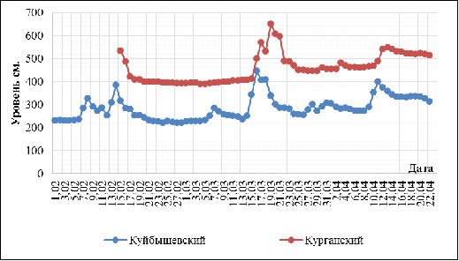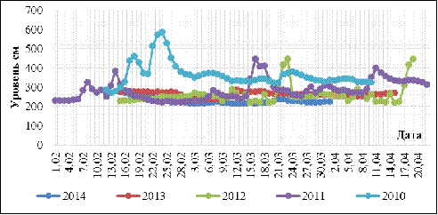 ежедневные уровни за период половодья, а также данные запасов воды в снеге. В