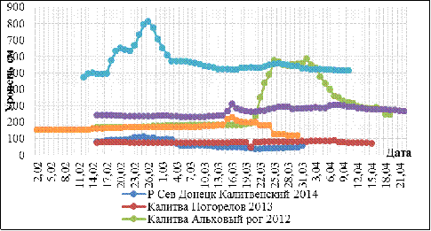- начале мая. Интенсивность спада половодья значительно меньше интенсивности