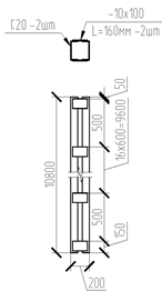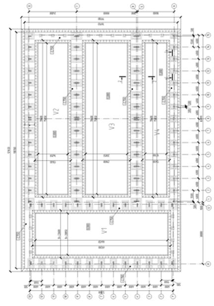Производственный корпус решен в 4-х пролетах: три пролета в продольном