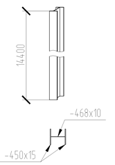 в продольных пролётах: 14,4м, 14,4м, 10,8м. Шаг крайних и средних колонн 6м.