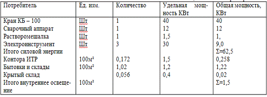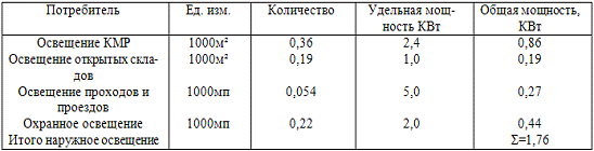 закрытых складах. Исходя из максимальных расходов электроэнергии, принимают