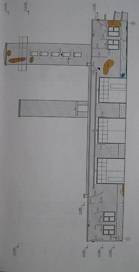 Стены подвальной части здания. Подвальная часть здания расположена в осях