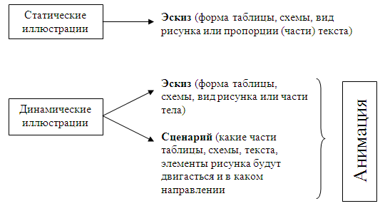 анимационных иллюстраций в виде эскиза, алгоритма или сценария