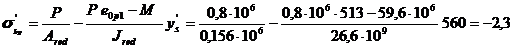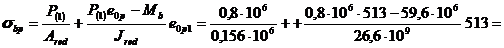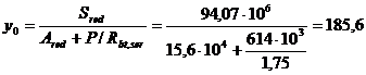 эксцентриситет обжимающего усилия Р относительно центра тяжести растянутой