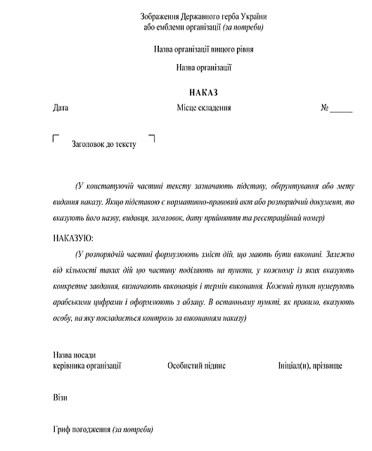 Об’єкт дослідження - склад, форми розпорядчих документів.