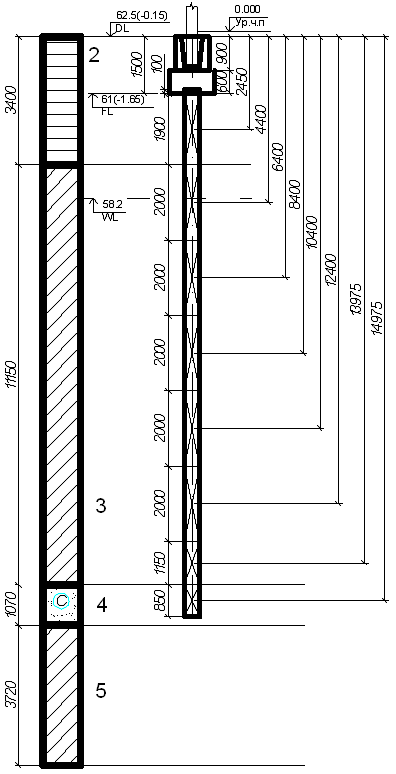свес, работающий на изгиб, на который действует давление грунта. Сечение