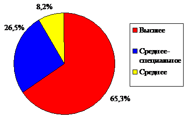 работников имеет высшее образование (65,3%), средне-специальное образование