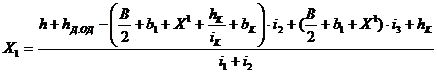 полотна над внутренней бровкой (на заданном поперечнике), м.; h1 -начальное превышение внешней