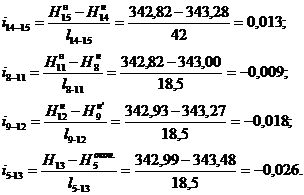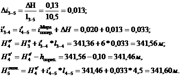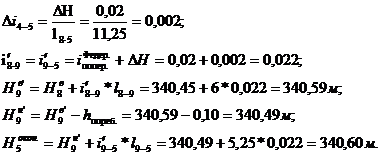 рабочих отметок пикетов 0,1,2,3 и 4 по данным табл.6.