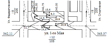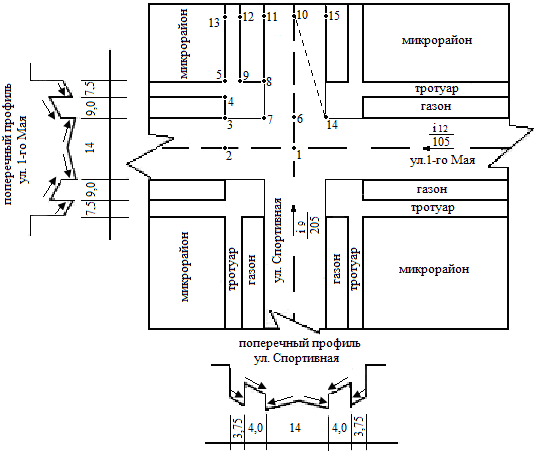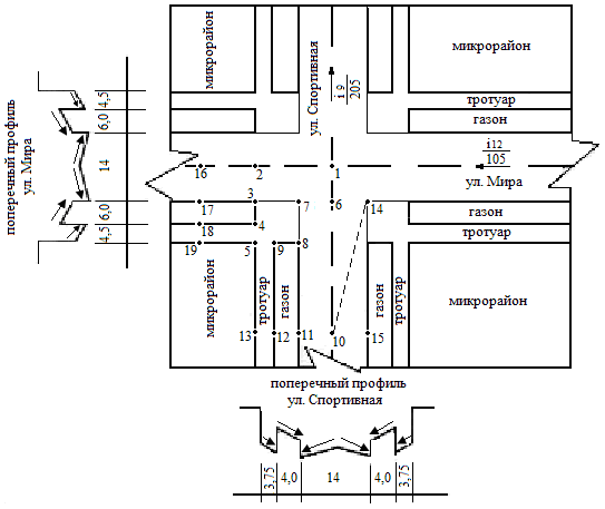 профили улиц, ограничивающих квартал, отметки центров перекрёстков, проектные