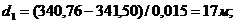 участков дороги между отметками нулевых работ и ближайшими пикетами. Используем