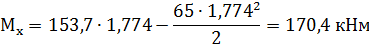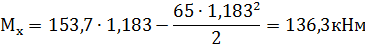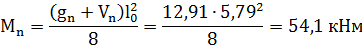 от нормативной нагрузки (изгибающие моменты) постоянной: