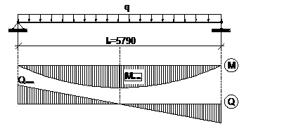 однопролетная шарнирно-опертая балка, загруженная равномерно-распределенной нагрузкой
