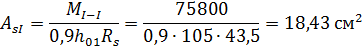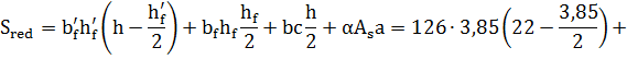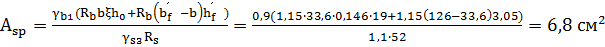 граница сжатой зоны проходит в полке, и площадь растянутой арматуры