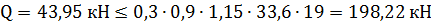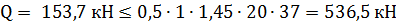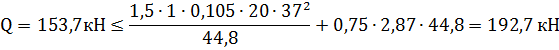 ширины этого сечения (b = 100 см) должно выполняться условие: