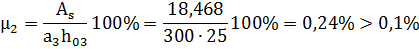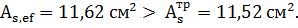 , выбранная арматура удовлетворяет условию армированию. В случае