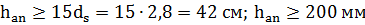 до 300 мм. При ширине подошвы фундамента а ≤ 3 м минимальный диаметр