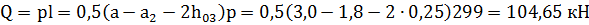 действующим снизу вверх равномерно распределенным реактивным отпором грунта.