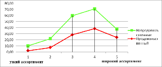 Рис. 3 Альтернативы торгового ассортимента по широте и
