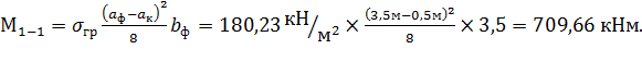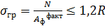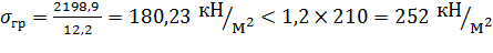 ) Расчетное сопротивление грунта: Rгр. = 210 кН/м2