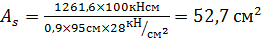 Площадь сечения рабочей арматуры определяется из расчета на изгиб