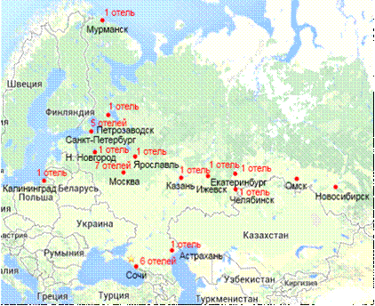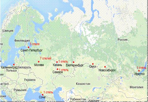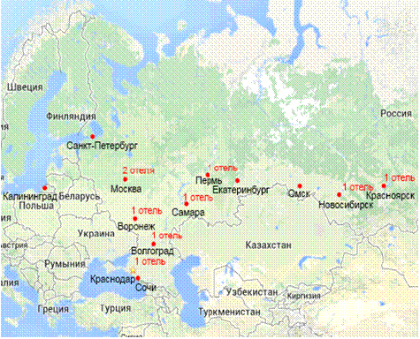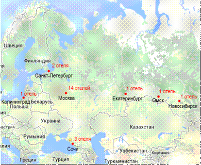 Рисунок 1 - География Accor Hotels (23 отеля)