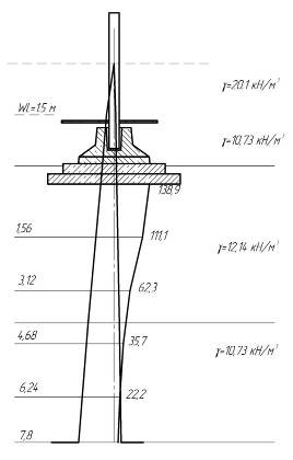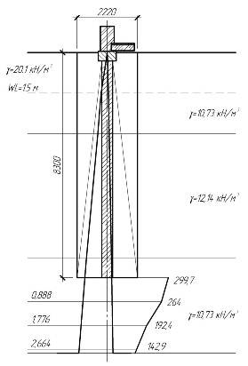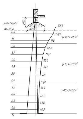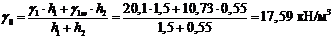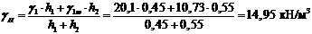 осредненный удельный вес грунтов, залегающих выше подошвы условного фундамента: