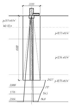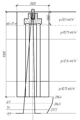 что подошва ростверка располагается на отметке 1,35 м ниже уровня планировки.