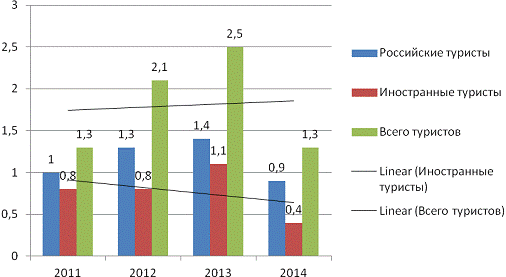 До 2014 г. наблюдалась тенденция улучшения развития туризма в России: