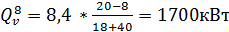 тепловой поток на вентиляцию общественных зданий, K2=0,6 [2].