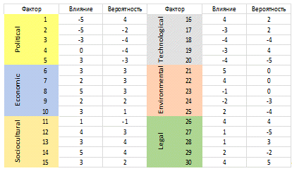 макросреды и вероятности их проявления для PESTEL-анализа (см. таблицу 3)